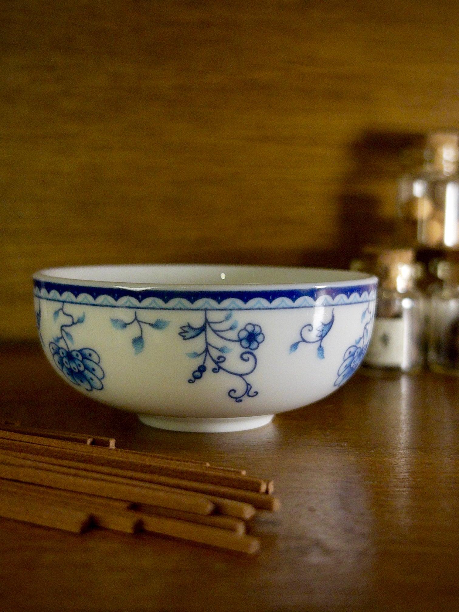 A fine porcelain tea cup in classic blue-and-white style, adorned with delicate floral branches. The motif evokes ancient Chinese gardens — quiet, blooming, and timeless. With its generous shape and elegant presence, it’s perfect for fragrant oolongs or aged sheng pu-erh.