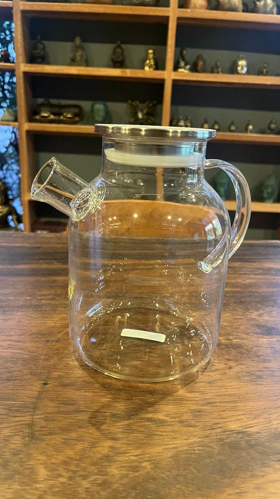 The stainless steel lid, with its polished finish, adds a touch of sophistication and ensures a secure fit, preserving the warmth and aroma of your tea. Perfect for loose-leaf teas, herbal infusions, or even cold brews, the CrystalFlow Teapot is a versatile addition to your kitchenware collection.