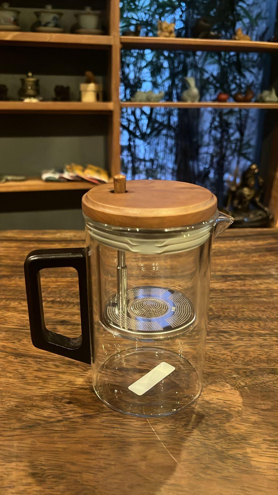 • Elegant Design: Natural wooden lid, modern black handle, and crystal-clear glass carafe for a sophisticated look.