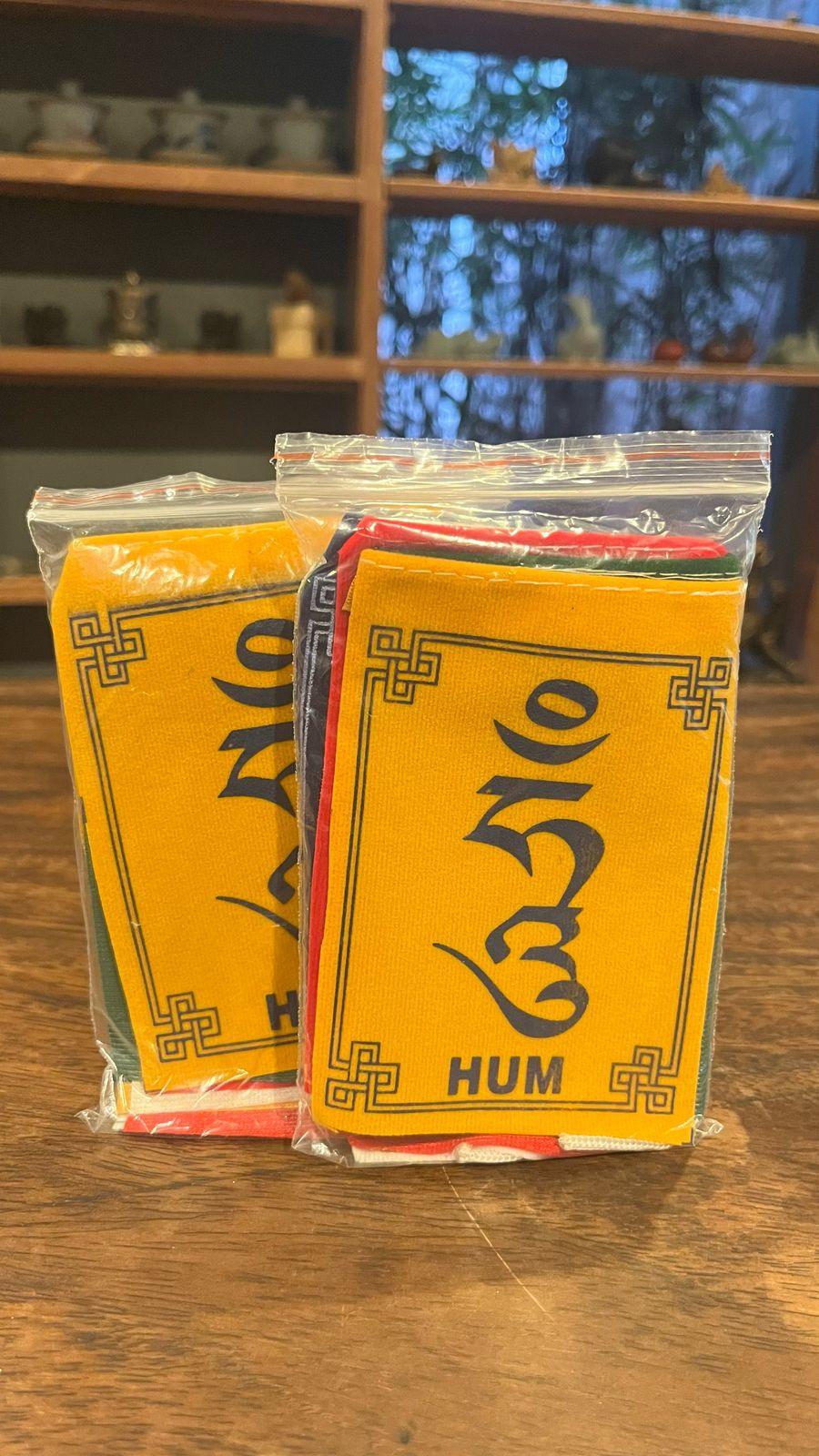 Each flag is carefully crafted with bold colors and intricate designs, symbolizing the elements of nature and spreading peace, compassion, strength, and wisdom. Bound neatly with a green ribbon, this set is perfect for hanging in your home, garden, or sacred space.