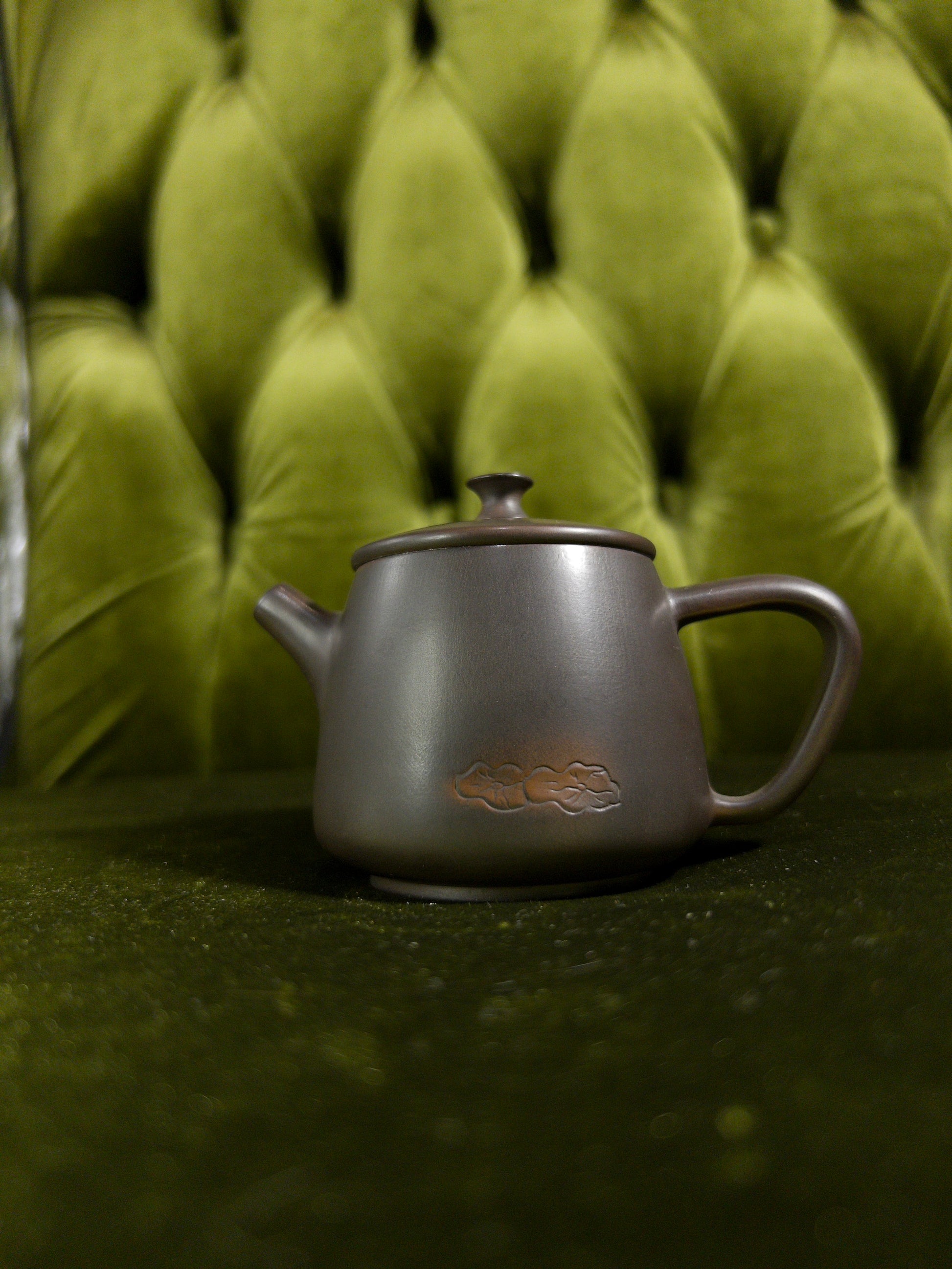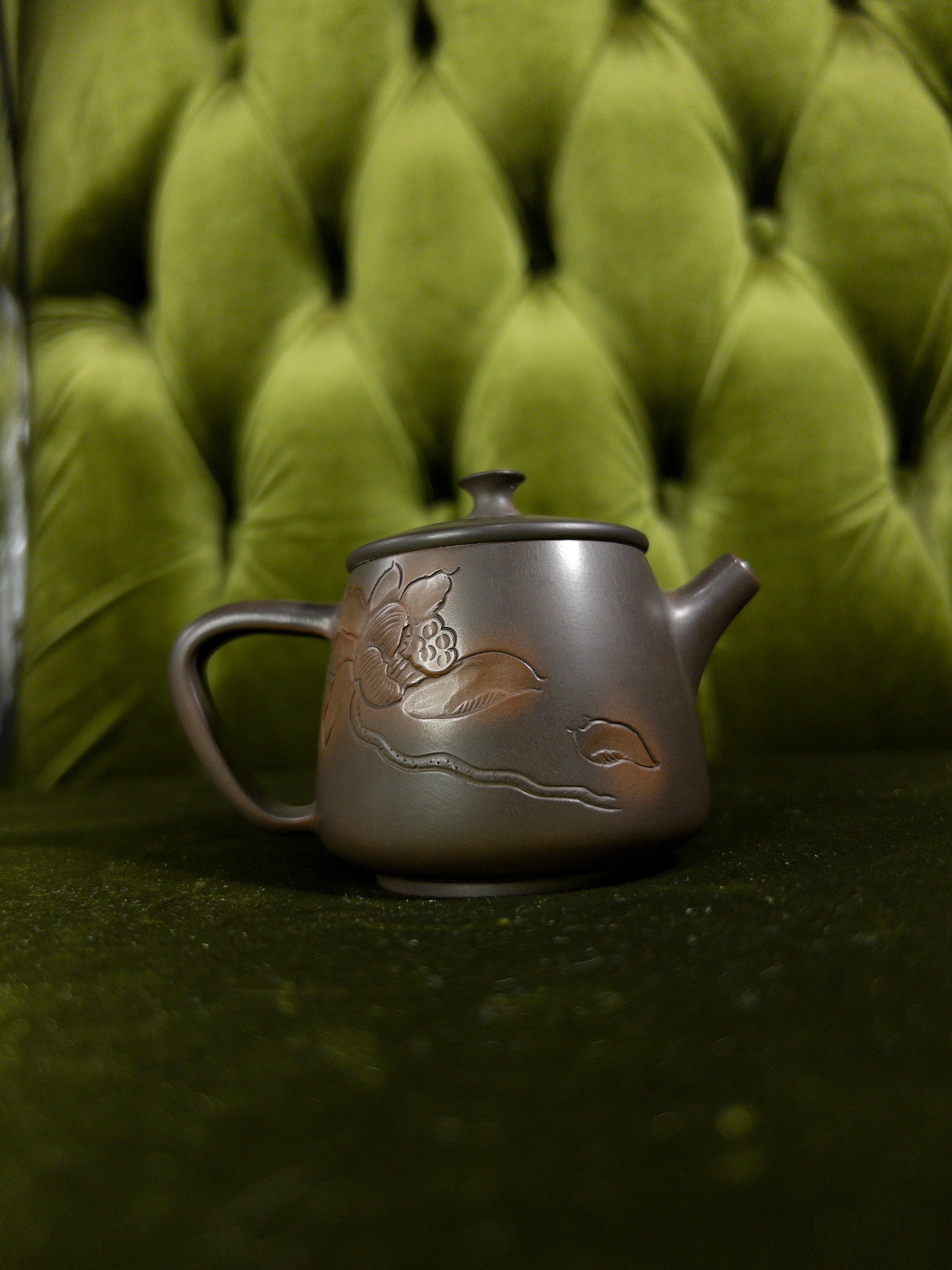 This 100 ml Yixing teapot is crafted from authentic zisha clay and features a delicate hand-carved orchid motif, symbolizing elegance, solitude, and noble integrity in Chinese tradition. The balanced upright form and precise spout make it an excellent choice for solo sessions with Dancong, white tea, or sheng puer.