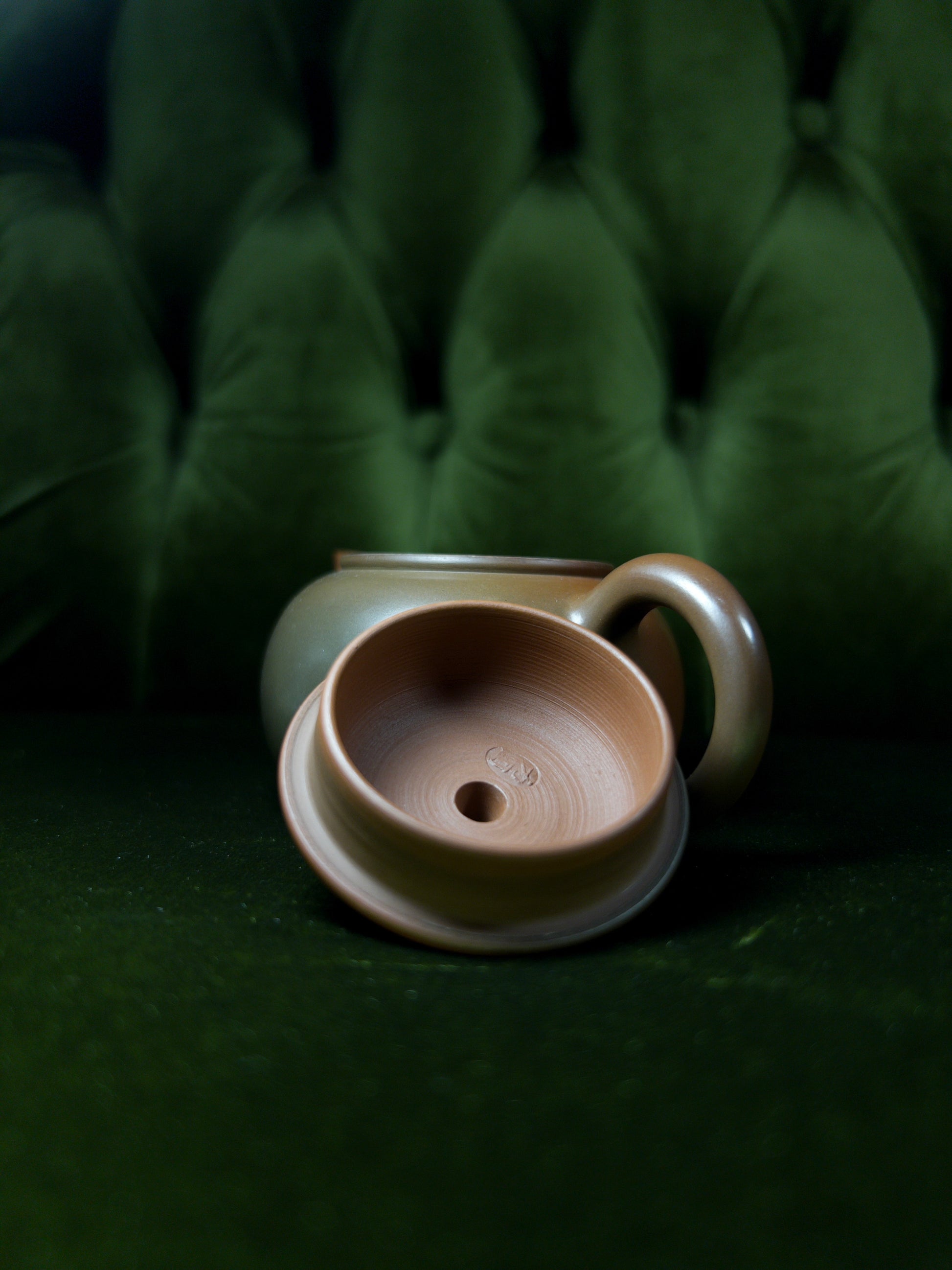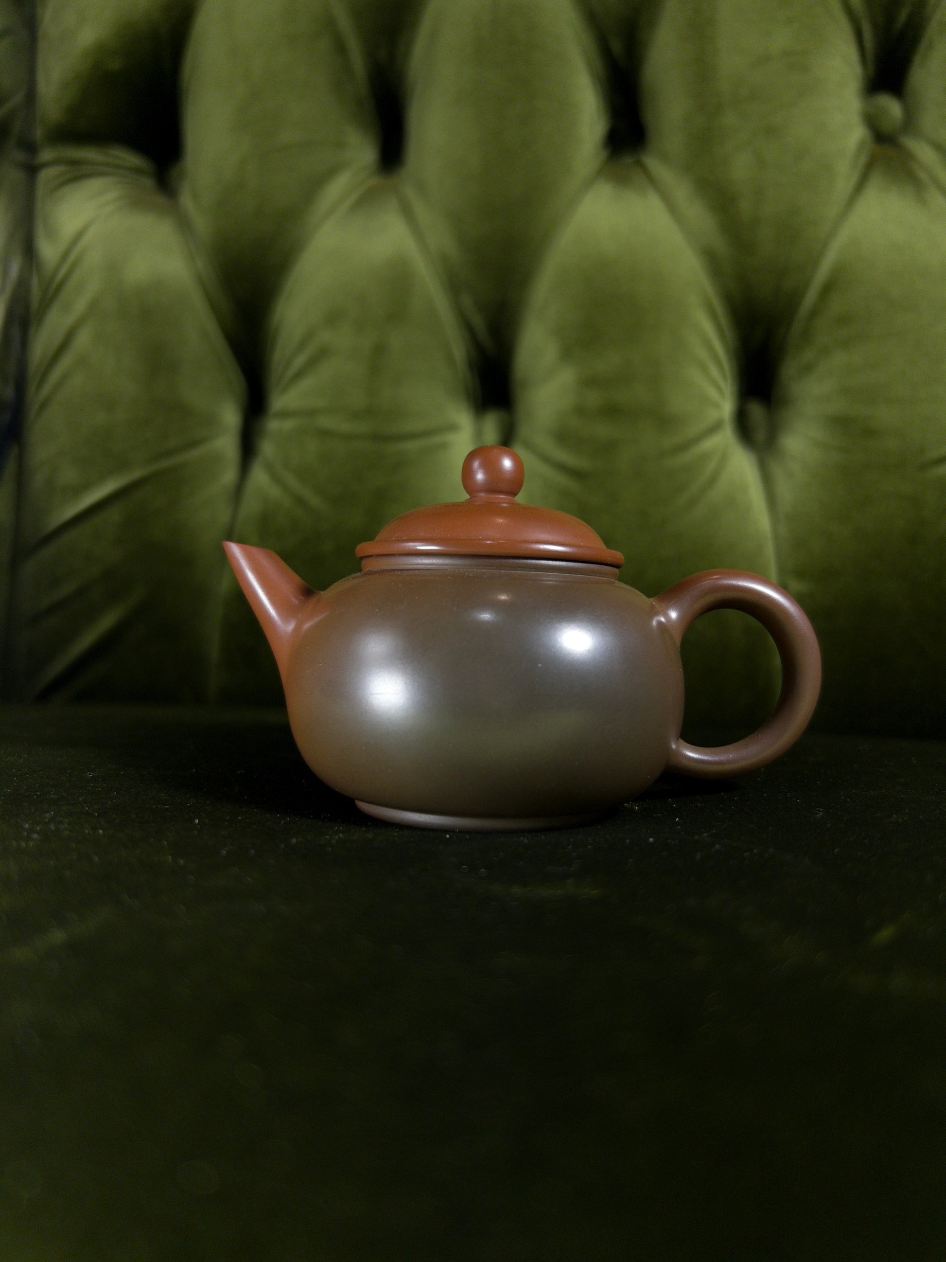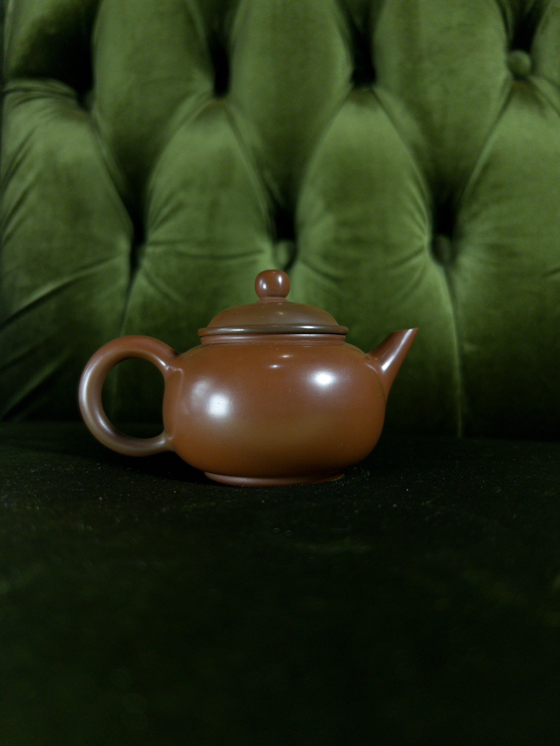 A classic Yixing teapot shaped from kiln-fired zisha clay, with a soft matte surface and a warm baked-sand hue. It's simple, honest form offers balance and reliability — a steady pour, comfortable grip, and perfect control of heat and infusion.